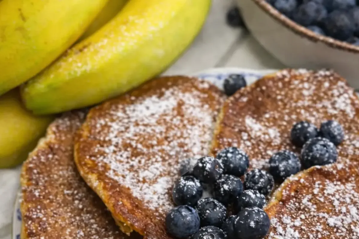 Proste i szybkie pancake'i bananowe ze skyrem i mąką pełnoziarnistą.